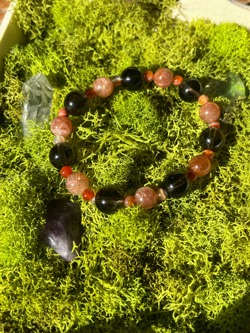 Confetti Sunstone, Carnelian, Smokey Quartz Bracelet -